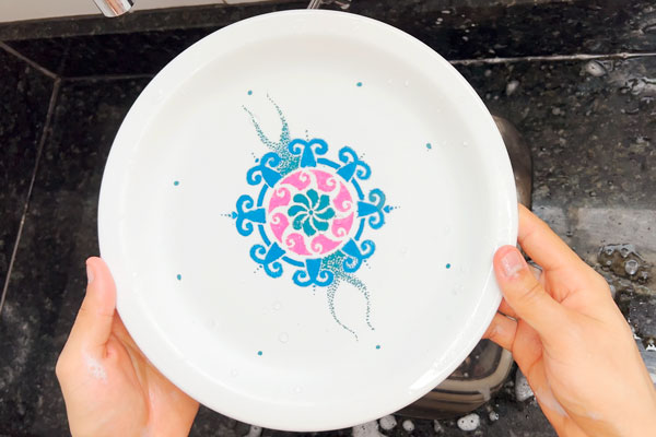 Primeiramente, para vidro e porcelana, nós indicamos o uso da canetas apenas em peças de decoração. Após aplicação, é só esperar alguns minutos até a tinta secar, em seguida, faça a queima em forno comum (pode ser o forno imbutido no fogão ou qualquer forno que você tiver) por 60 minutos a 250 graus.